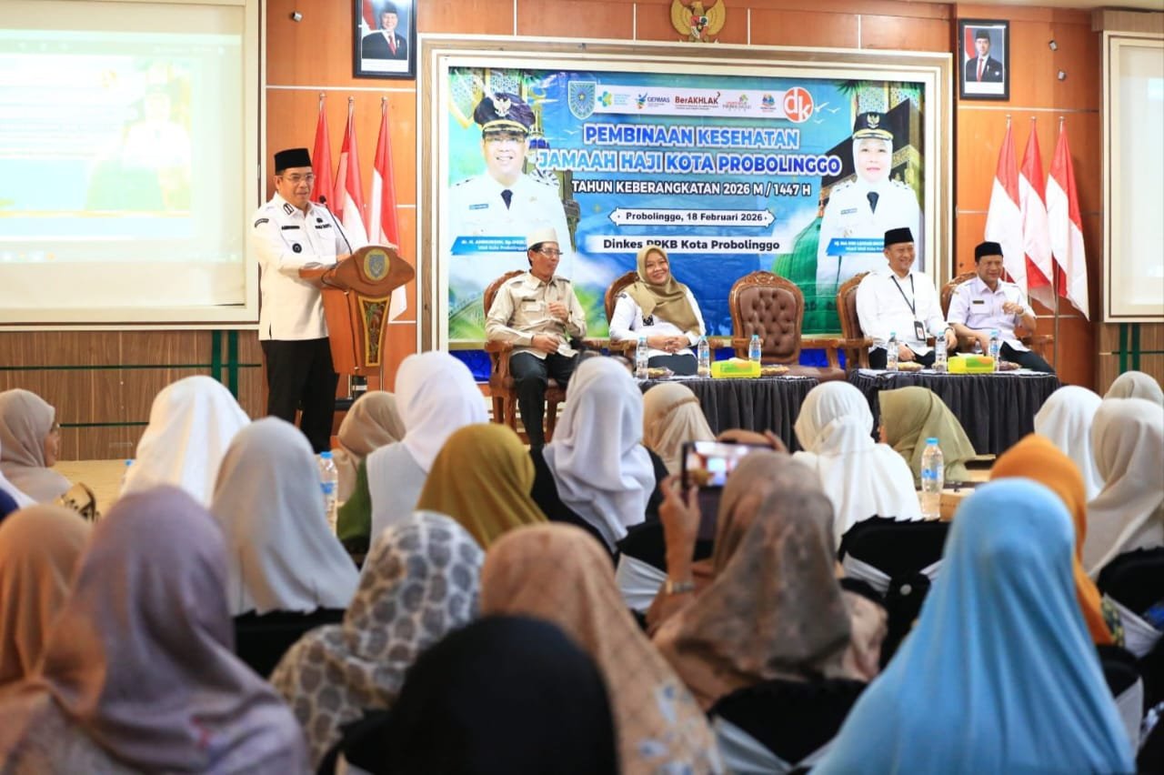 Rabu (18/2), sebanyak 312 Calon Jemaah Haji (CJH) Kota Probolinggo mengikuti pembinaan kesehatan jemaah haji keberangkatan tahun 2026. Selain CJH, kegiatan di Puri Manggala Bhakti ini juga diperuntukan bagi tenaga kesehatan haji, petugas haji, ketua kloter, pembimbing haji serta dokter penanggung jawab.