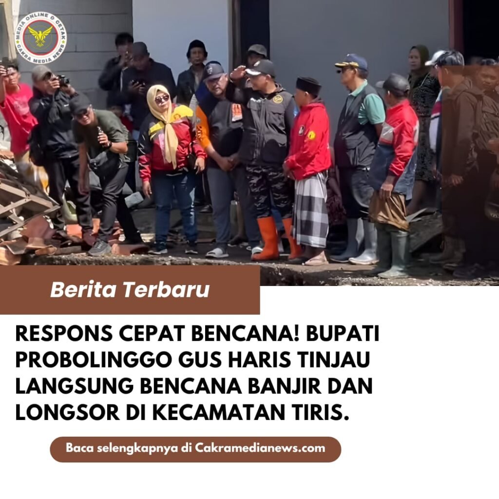 ‎Probolinggo,cakramedianews.com- Bencana banjir yang melanda desa-desa di Kecamatan Tiris, Kabupaten Probolinggo, mendapat respons cepat dan penuh kepedulian dari Pemerintah Kabupaten Probolinggo. Menunjukkan komitmen nyata dalam penanganan bencana, aksi tanggap darurat ini dimulai pada Jumat (12/12/2025) dengan diawali soft briefing cepat di Kantor Kecamatan Tiris, sebelum akhirnya dilanjutkan dengan terjun langsung meninjau lokasi-lokasi paling terdampak bencana.