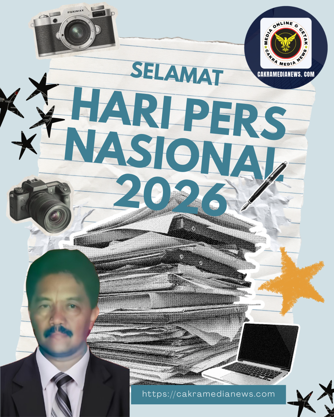 Media Online cakramedianews.com– Mengucapkan Peringatan Hari Pers Nasional 2026 mengingatkan pentingnya kebebasan pers yang berlandaskan etika, independensi, dan profesionalitas jurnalistik.(Red)