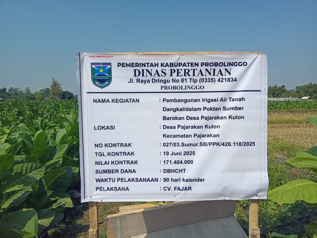 Proyek pembangunan irigasi air tanah dangkal/dalam Poktan sumber barokah desa Pajarakan kulon kecamatan pajarakan.