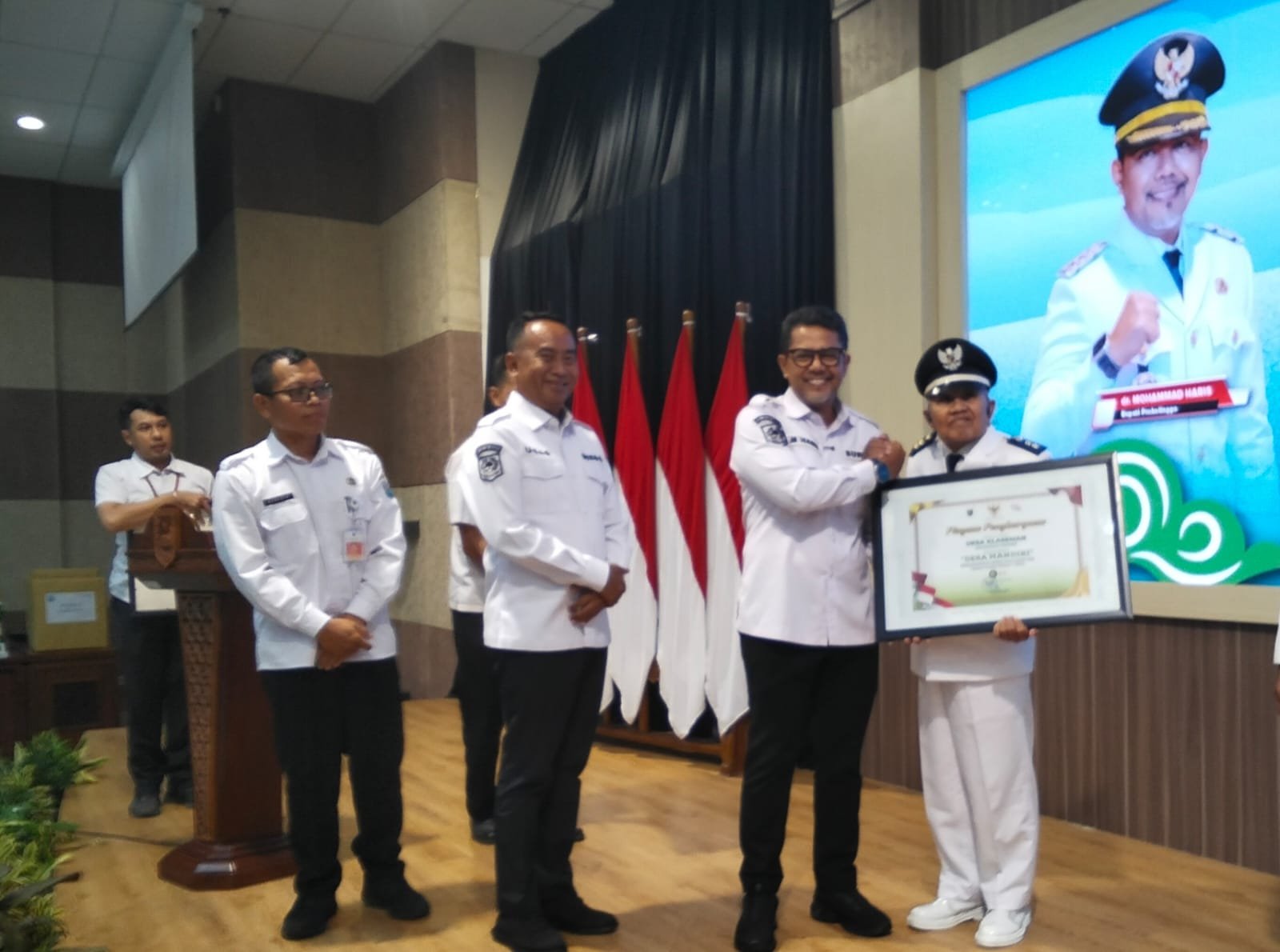 Desa Klaseman, Kecamatan Gending, kembali menorehkan prestasi gemilang dengan meraih predikat “Desa Mandiri” berdasarkan Data Indeks Desa Membangun (IDM) selama tujuh tahun berturut-turut. Piagam penghargaan tersebut diserahkan langsung oleh Bupati Probolinggo, Gus dr. Muhammad Haris, kepada Kepala Desa Klasemen, Rabu (17/12/2025), di Auditorium Madakaripura lantai 5, Kantor Pemkab Probolinggo.