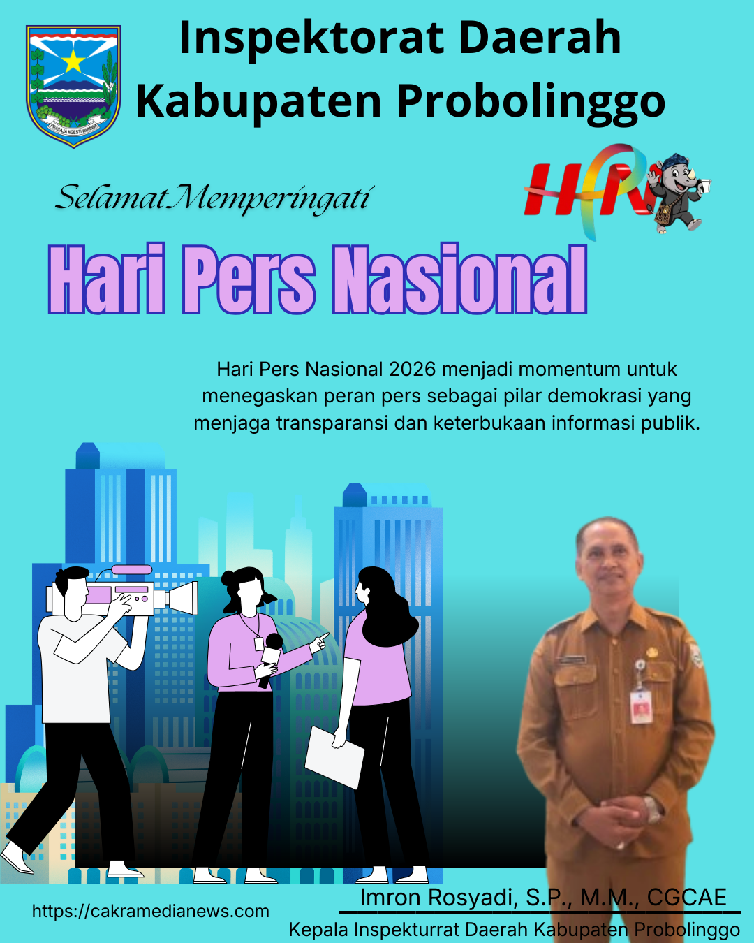 Kepala Inspektorat Kabupaten Probolinggo Imron Rosyadi, S.P., M.M., CGCAE Mengungkapkan Hari Pers Nasional 2026 menjadi momentum untuk menegaskan peran pers sebagai pilar demokrasi yang menjaga transparansi dan keterbukaan informasi publik.(Mis)