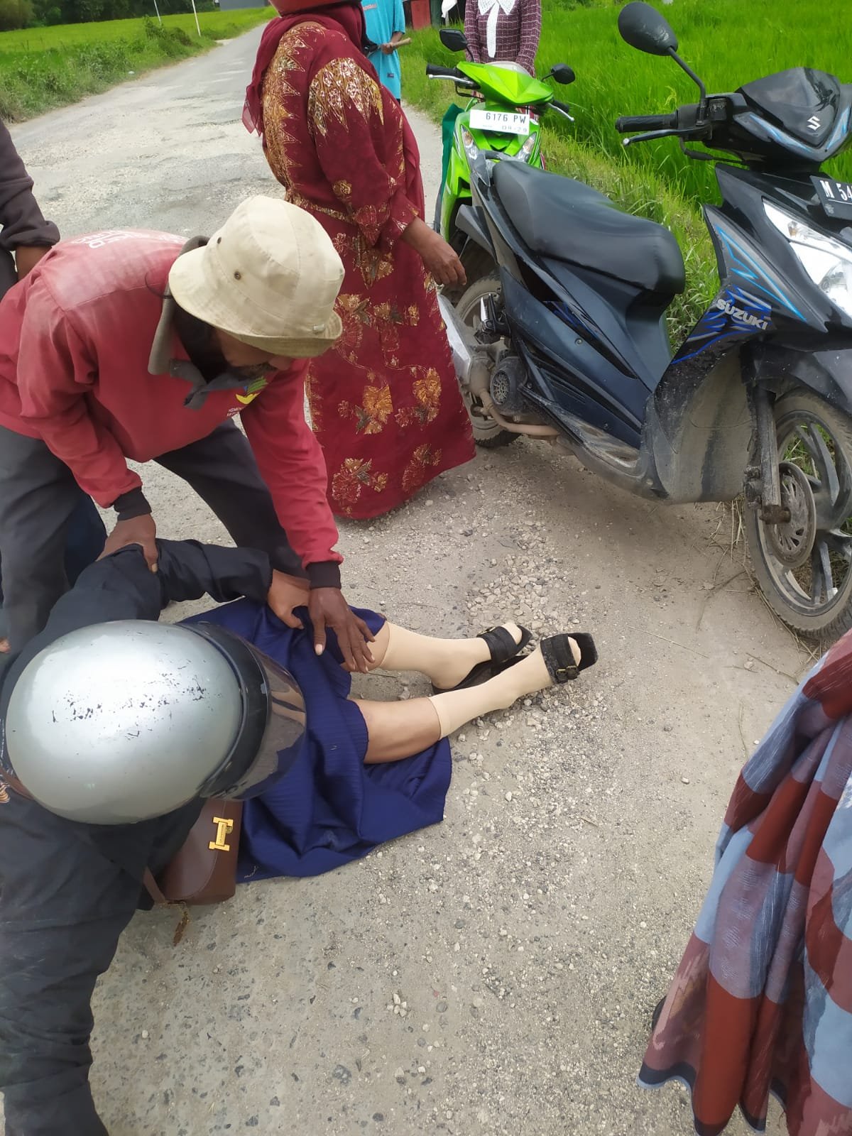 Warga yang menyaksikan kejadian tersebut segera memberikan pertolongan, dibantu rekan-rekan guru yang datang dari arah utara. Karena tidak mampu berjalan akibat nyeri di kaki dan sekujur tubuh, korban kemudian dibawa ke Klinik dr. Indarto untuk mendapatkan perawatan medis sebelum akhirnya diantar pulang.