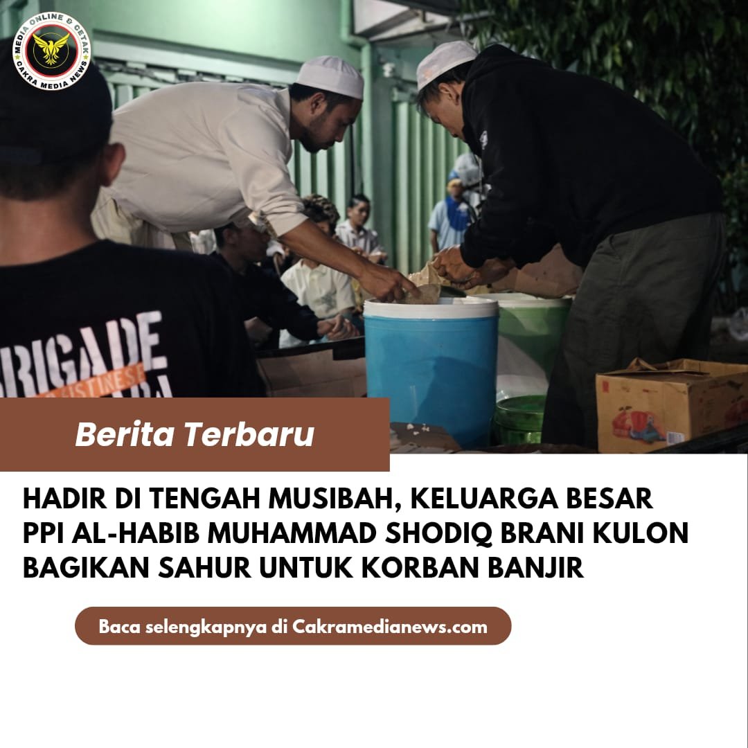 Probolinggo,cakramedianews.com- Di tengah perjuangan warga menghadapi sisa-sisa luapan banjir yang merendam pemukiman pada Sabtu malam, sebuah aksi kemanusiaan hadir membawa kesejukan. Keluarga Besar Pondok Pesantren Islam (PPI) Al-Habib Muhammad Shodiq Brani Kulon turun langsung membagikan bantuan makanan sahur bagi warga terdampak banjir di wilayah Kecamatan Kraksaan, Minggu dini hari (23/02/2026).