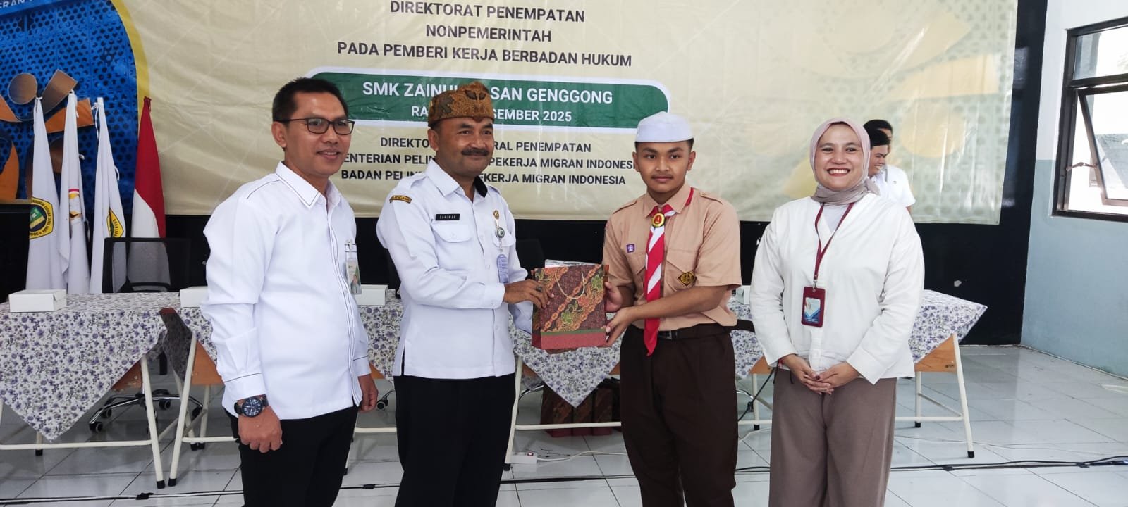 Probolinggo,cakramedianews.com- Sebanyak 100 orang siswa SMK Zainul Hasan (Zaha) Genggong Kecamatan Pajarakan mendapatkan edukasi mengenai tata cara bekerja ke luar negeri secara prosedural dari Direktorat Penempatan Non Pemerintah pada Pemberi Kerja Berbadan Hukum pada Direktorat Jenderal Penempatan Kementerian Pelindungan Pekerja Migran Indonesia/Badan Pelindungan Pekerja Migran Indonesia (KP2MI/BP2MI) Republik Indonesia, Rabu (10/12/2025).