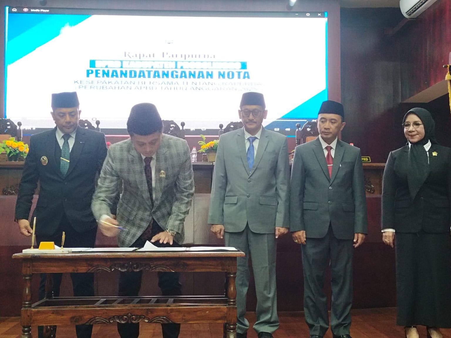 Selanjutnya dilakukan penandatanganan Nota Persetujuan Bersama Bupati Probolinggo dan Pimpinan DPRD Tentang Penetapan Raperda Perubahan APBD Tahun Anggaran 2025. Penandatanganan nota persetujuan bersama tersebut dilakukan oleh Bupati Probolinggo Gus dr. Mohammad Haris dan Pimpinan DPRD disaksikan oleh seluruh peserta rapat paripurna DPRD Kabupaten Probolinggo.