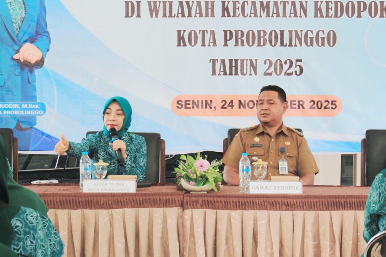 Senin (24/11) pagi, Ketua Tim Penggerak Pemberdayaan dan Kesejahteraan Keluarga (TP PKK) Kota Probolinggo dr. Evariani, resmi membuka kegiatan Penguatan 10 Program Pokok PKK untuk Membangun Keluarga Tangguh dan Sejahtera, di Pendapa Kecamatan Kedopok. Kegiatan ini dihadiri jajaran pengurus TP PKK kecamatan, para lurah serta perangkat kelurahan se-Kecamatan Kedopok.