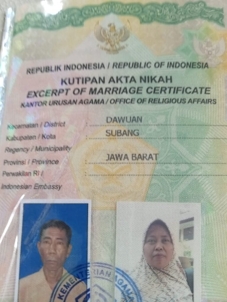 Pernikahan Mimin Mintarsih Warga Kp Karangsugih RT 017/ 004 Ds Manyeti Kec Dawuan Kabupaten Subang, dengan Calon suami yang mengaku dirinya seorang Bos berinitial Tar ( red )