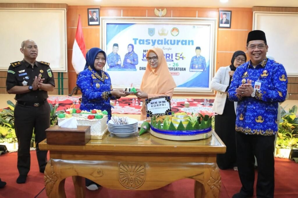 Usai pelaksanaan upacara peringatan HUT KORPRI ke-54 dan HUT Dharma Wanita Persatuan (DWP), Senin (1/12) rangkaian acara berlanjut dengan tasyakuran di Puri Manggala Bhakti. Tasyakuran ini menjadi wujud rasa syukur atas terlaksananya seluruh rangkaian kegiatan dua peringatan besar tersebut.
