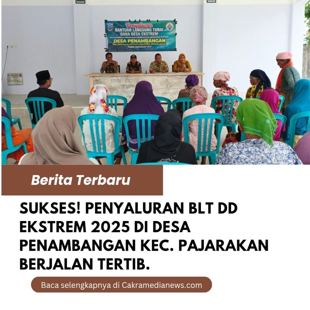 Probolinggo, Cakramedianews.com – Pemerintah Desa Penambangan, Kecamatan Pajarakan, menunjukkan komitmennya dalam membantu masyarakat menghadapi tantangan ekonomi dengan menyalurkan Bantuan Langsung Tunai Dana Desa (BLT DD) Ekstrem Tahun Anggaran 2025. Penyaluran bantuan ini berlangsung tertib di Balai Desa Penambangan pada Kamis, 13/11/2025.
