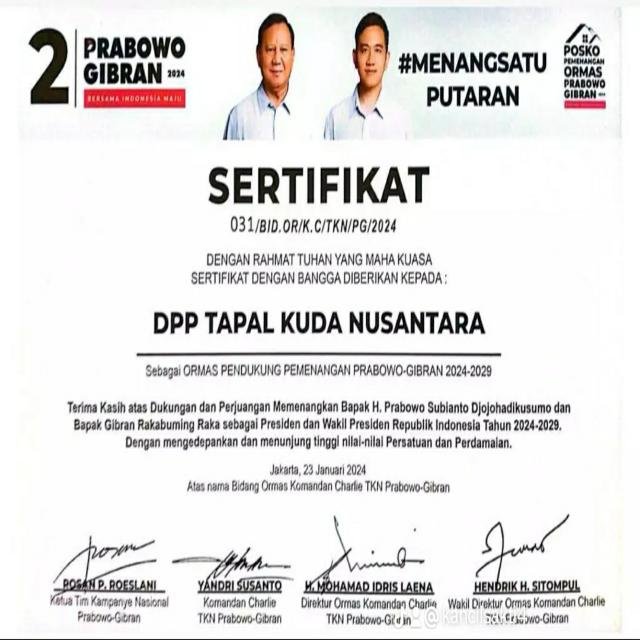 Bambang menegaskan bahwa pihaknya bukan sedang menghambat program pemerintah, tetapi justru mengawalnya sebagai bentuk dukungan penuh. Ormas Tapal Kuda Nusantara merupakan barisan pendukung Prabowo–Gibran yang memiliki sertifikasi resmi nomor 031/BID.OR/K.C/PG/TKN/2024, sehingga pengawasan atas program MBG adalah bagian dari tanggung jawab moral organisasi.