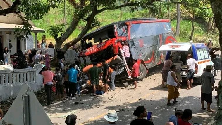 Probolinggo,cakramedianews.com- Sebuah bus pariwisata bernopol P 7221 UG mendadak mengalami kecelakaan di akses utama dari wisata Bromo di Jalan Raya Sukapura, Desa Botoh, Kecamatan Lumbang, Probolinggo. Dalam peristiwa mengerikan ini, enam orang tewas seketika di lokasi, sementara puluhan penumpang lainnya mengalami luka-luka.