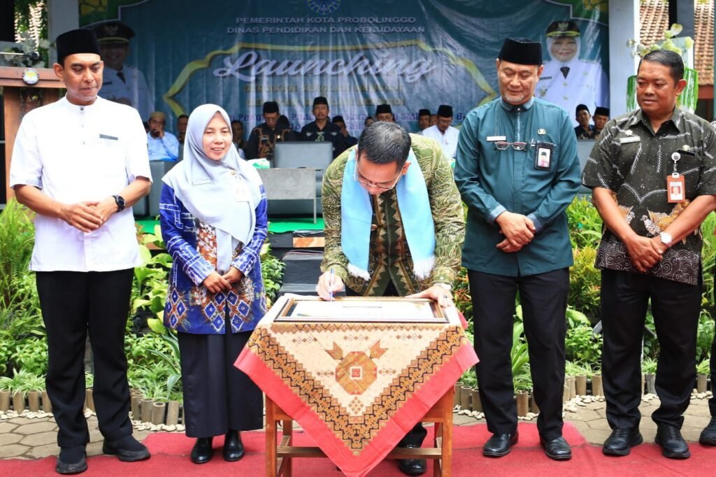 Wali Kota Probolinggo dr. Aminuddin secara resmi meluncurkan program Gerakan Sekolah Mengaji dan Gerakan Sekolah Berbagi di SMP Negeri 8, Jumat (27/2). Peluncuran ini ditandai dengan penandatanganan program Remaja Musala Teman Sebaya (Remus Baya), disaksikan jajaran pejabat dan pemangku kepentingan pendidikan se-Kota Probolinggo.