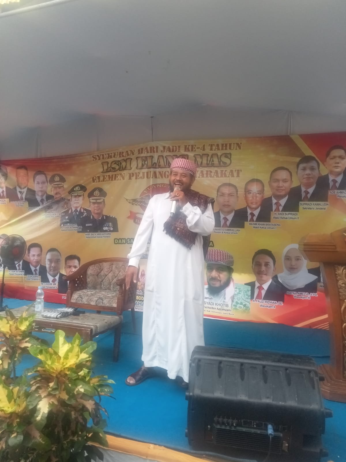Dalam Acara tersebut sengaja mengundang Untuk Hiburan Qosidah Moderen yang sengaja di datangkan dari Kabupaten Karawang Jawa Barat ,akan tetapi Ketua Umum DPP Elang Mas dengan sengaja Untuk Acara Siraman Rohani mengundang Ulama Besar dari Kabupaten Indramayu yaitu KH IMRON ROSYADI MA pemilik Ponpes DARUSHOLIHIN AZZAMZAMI ,Alamat Ktr/ Sekretariat : Dsn Karangjaya Ds Mangunjaya Kecamatan Anjatan Kabupaten Indramayu ( 45256 )